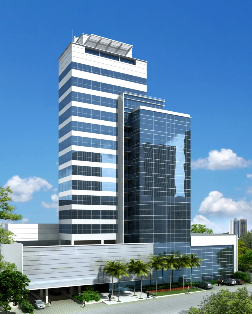 Edifício Corporativo de alto padrão. Sua concepção é formal, em blocos distintos com linhas diferenciadas entre os mesmos, com utilização de vidro leitoso nos pavimentos de garagem.